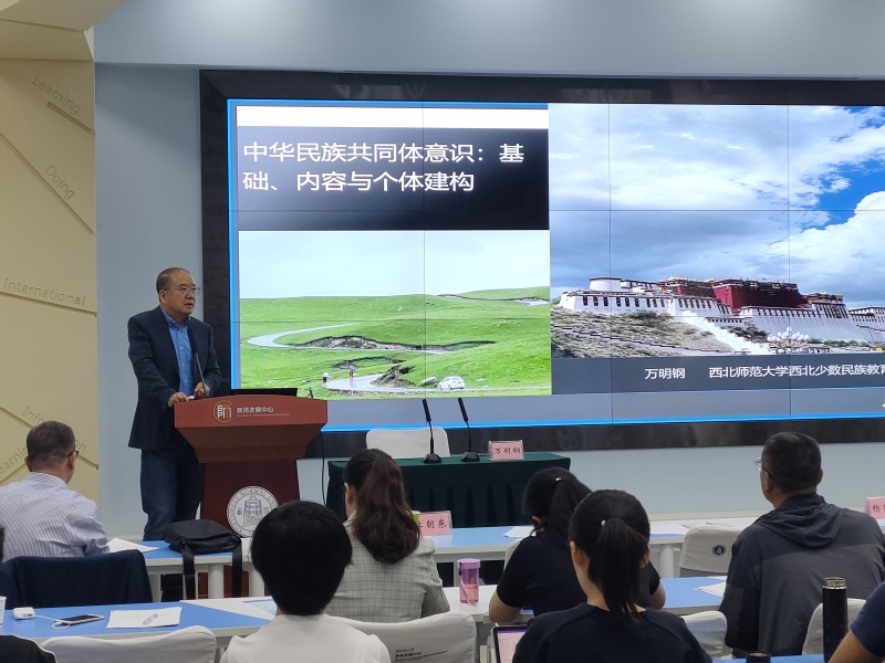 万明钢教授作了以《中华民族共同体意识:基础、内容与个体建构》为题的学术报告。他指出,铸牢中华民族共同体意识是新时代民族工作的主题和主线,多元一体是中华民族共同体的根本特征,并据此力图厘清共同体和社群主义的概念区别。