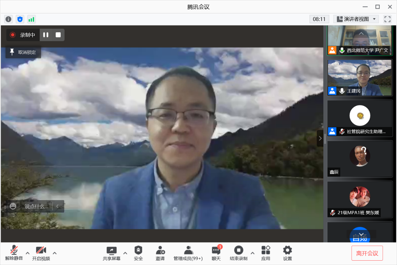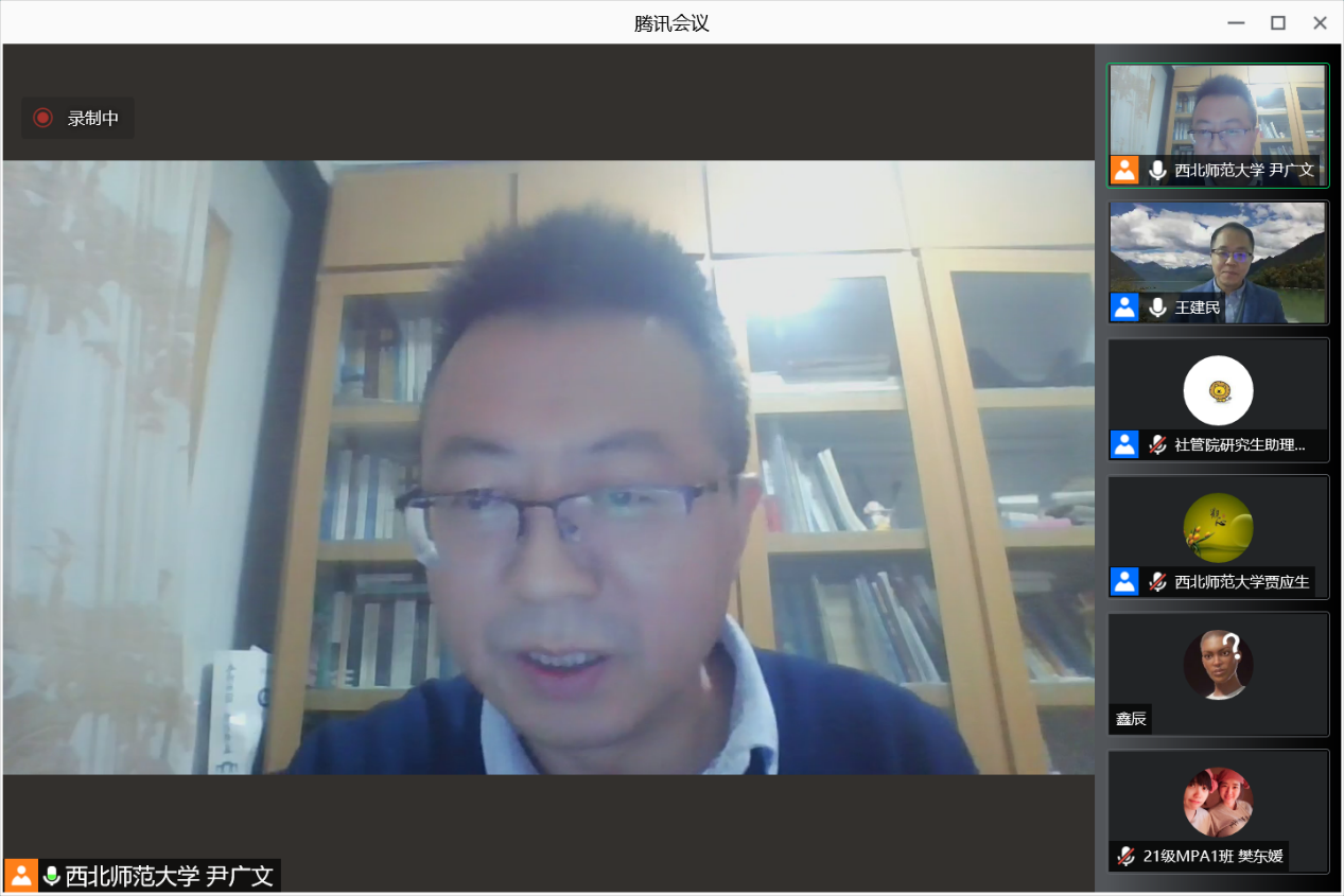 本次讲座由公司社会学系主任尹广文副教授主持,社会学研究生负责人贾应生教授做评议,全体研究生和部分老师参加了此次线上讲座。