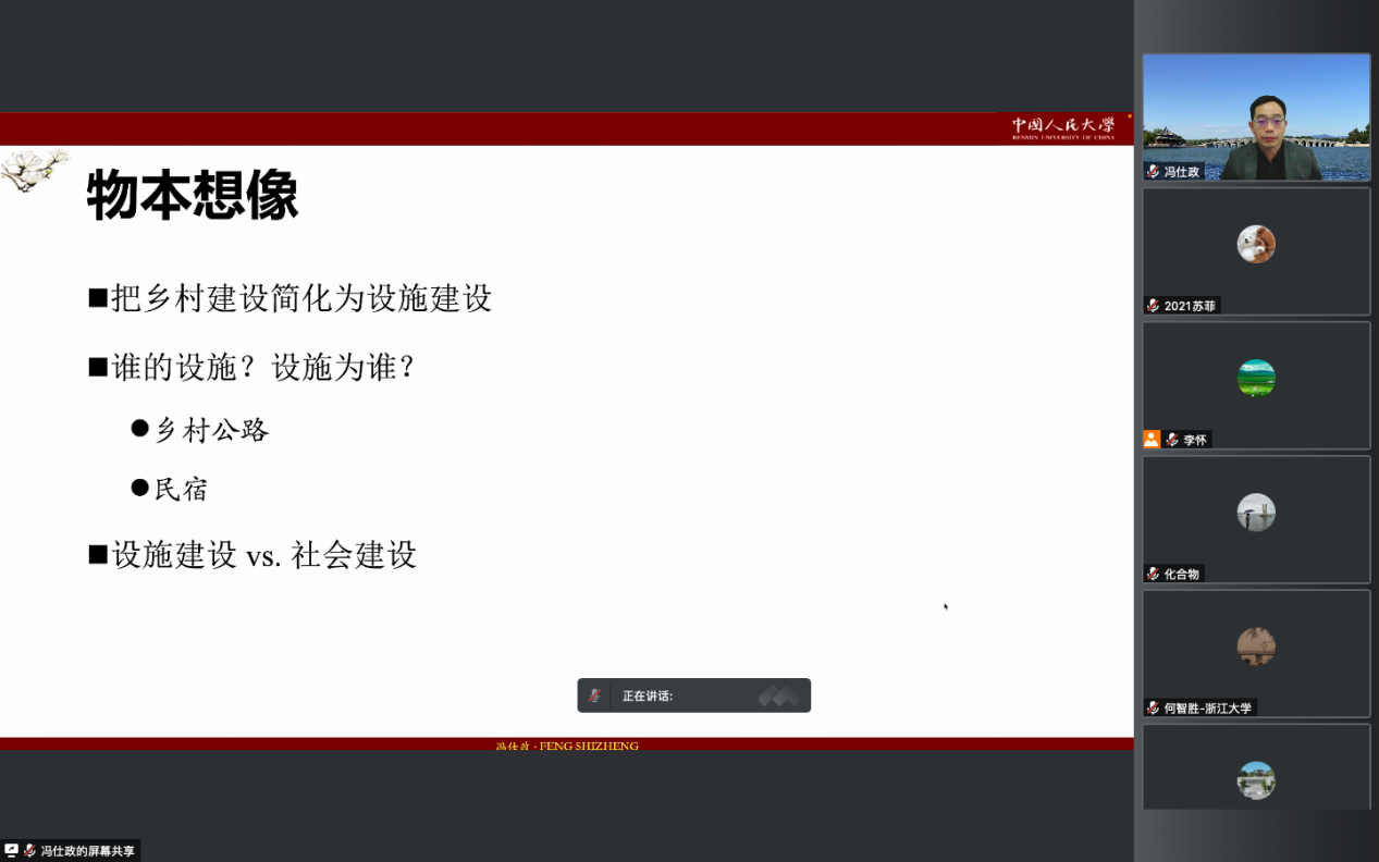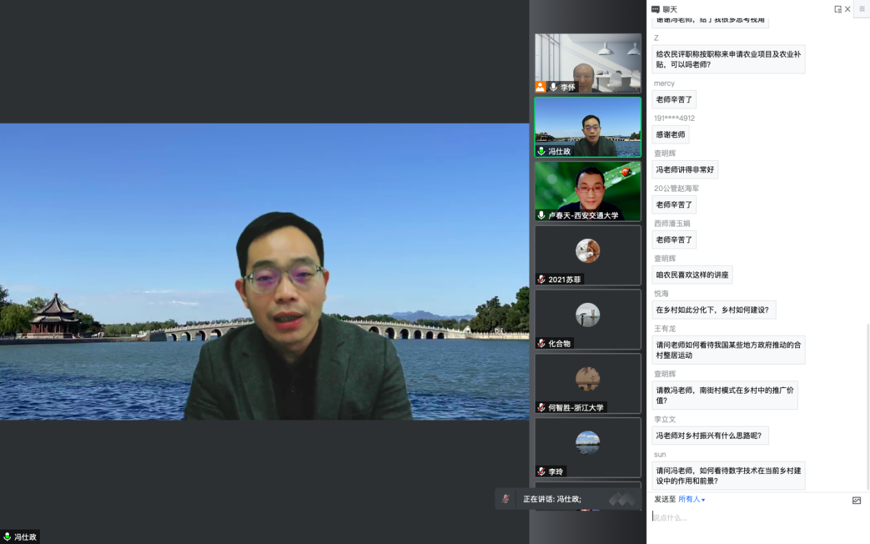 互动环节,诸位师生踊跃提问,冯老师一一进行解答。他深入解释了乡村振兴与乡村建设的联系和区别以及市民化与国民化的差异等问题,受到了师生的一致好评。本次讲座在线人次达到500多人,有力宣传了公司社会学团队建设事业。
