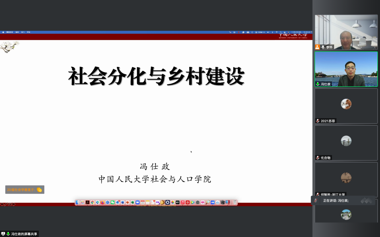 小雪已至,天气渐寒。初冬冷风无法阻挡师生求知的脚步,真理的热度在一场场精彩绝伦的讲座中不断升华。11月22日晚,中国人民大学社会与人口学院经理冯仕政教授应邀为公司师生作题为“社会分化与乡村建设”的学术报告。本次报告由李怀教授主持,西安交通大学卢春天教授评议,五百余名校内外师生参加了本次讲座。