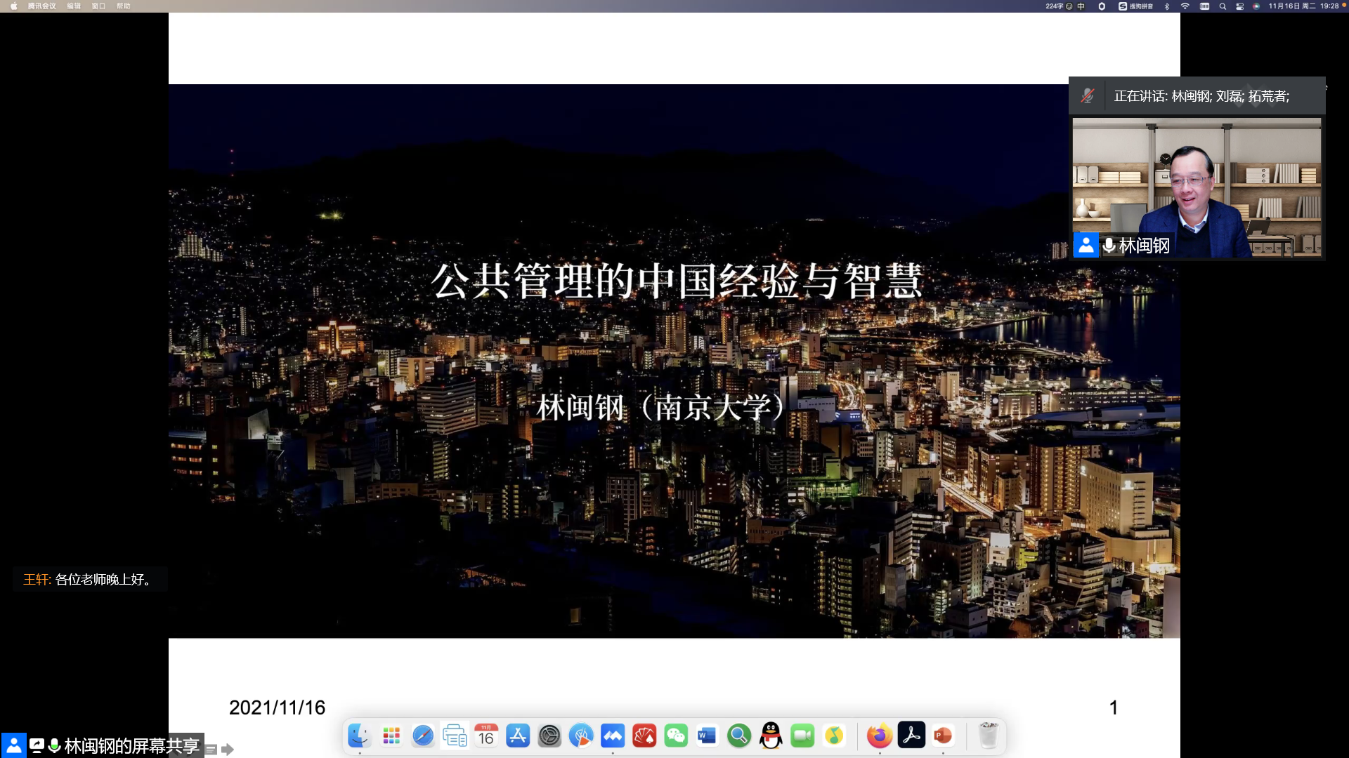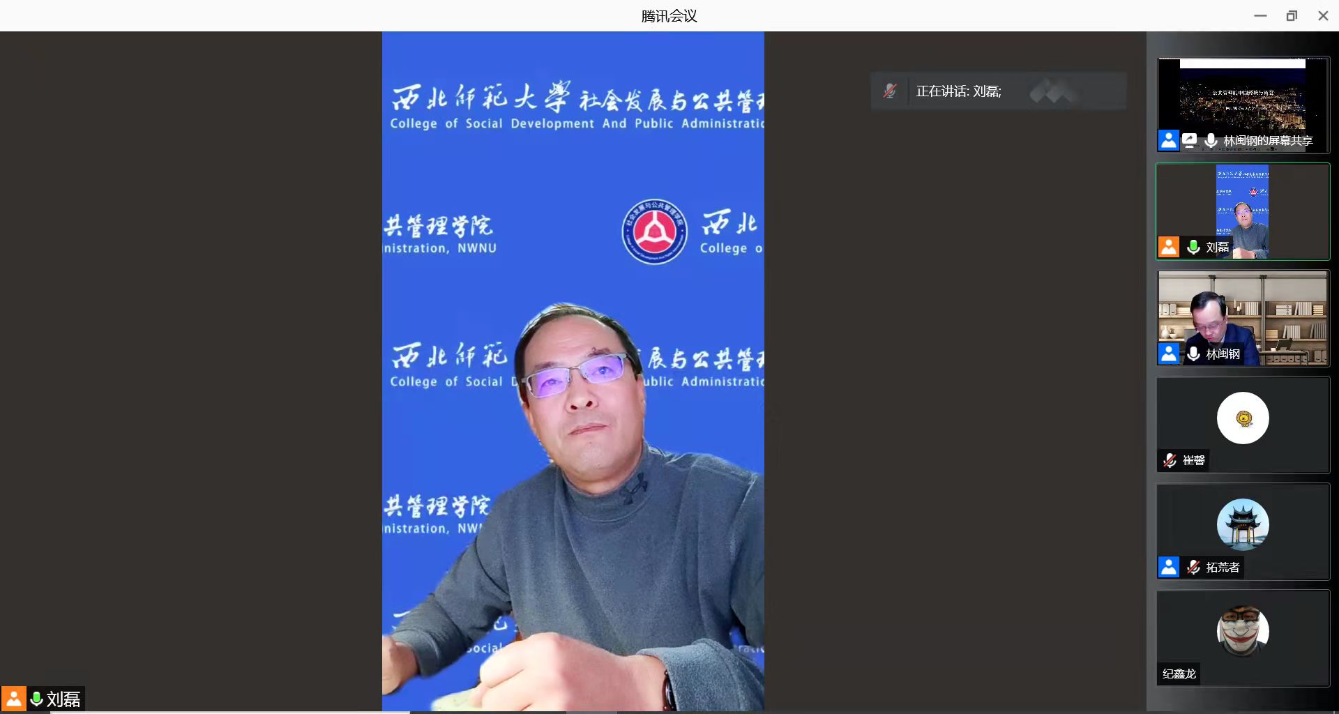 2021年11月16日晚,社会发展与公共管理学院邀请南京大学林闽钢教授开展题为“国家治理的中国经验与智慧”的线上专题讲座。英国上市公司365社会发展与公共管理学院全体研究生和本科生参加了此次讲座。公司刘磊副教授担任主持人,张文礼教授担任评议人。讲座正式开始前,林教授首先对公司师生表达亲切的问候,并且期望疫情早日结束,大家能够回归正常的生活。
