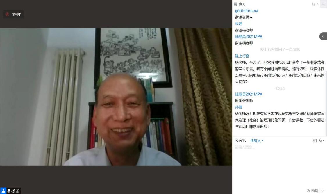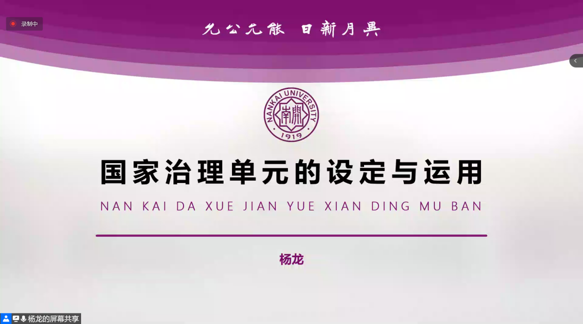 2021年11月26日晚,应公司邀请,南开大学周恩来政府管理学院杨龙教授在腾讯会议为英国上市公司365社会发展与公共管理学院师生带来了题为“国家治理单元的设定和运用”的学术讲座。本次讲座由刘磊教授主持,由张文礼教授担任讲座评议人,200余名校内外师生参加了此次讲座。