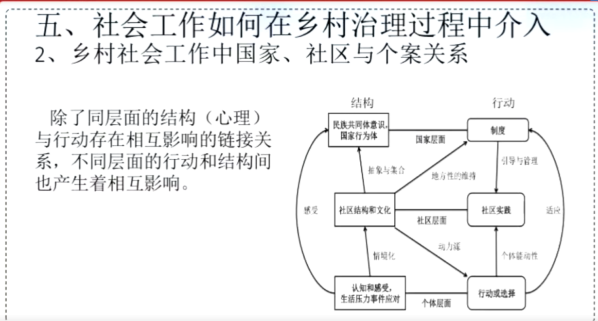最后,于老师就社会工作如何在乡村治理过程中介入这一问题作了详细介绍。于老师提到目前乡村社会工作滞后于乡村社区发展要求,具体体现在问题导向逻辑与治理内涵相悖、工作内容与工作模式趋同导致地方性文化关照缺乏、对乡村社区与农民群体了解的程度,远低于“助人自助”的热情。针对这些问题于老师对乡村社会工作也作了一些思考:目前乡村社会工作介入,应当以社区为中心,而非个案为中心;农村社会工作应当参与到国家话语及社区层面的社区治理建的各个方面,而非紧盯弱势群体、支持型项目。
