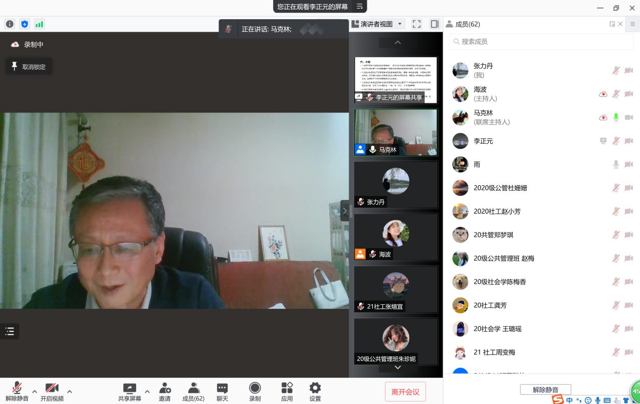 2021年12月13日晚,社会发展与公共管理学院邀请兰州大学李正元副教授开展题为“多元一体”中国的区域关系路径——谷苞农牧互动共生论的线上专题讲座。此次讲座由公司讲师包海波老师担任主持人,马克林教授担任与谈人,学院全体研究生参加听取了讲座。