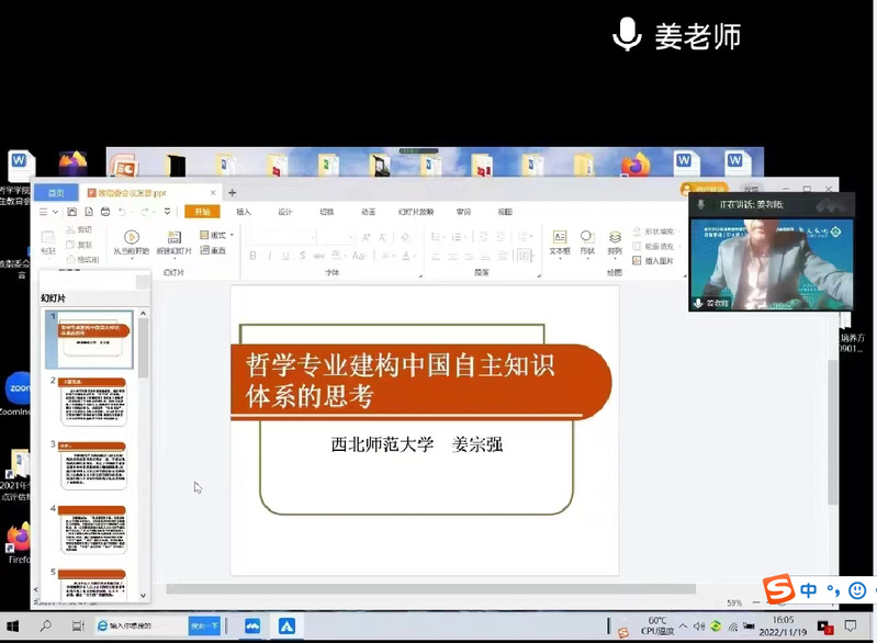 公司李朝东教授、姜宗强教授受邀在线参加会议。大会发言环节,姜宗强经理代表英国上市公司365哲学学院作了题为“哲学专业建构中国自主知识体系的思考”的报告,与各位专家进行了经验交流和分享。