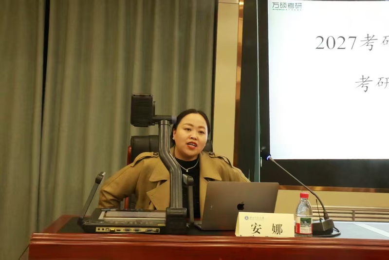 讲座中,安娜老师以考研英语试卷结构、题型分值为切入点,结合近年命题规律,深入剖析了考研英语的命题趋势。此外,针对考研英语备考周期长、任务重的特点,安娜老师从词汇积累、语法巩固到真题演练的时间规划与资源选择出发,为同学们定制了科学有效的备考方案与建议。与此同时,她还聚焦“考研各大板块高分法则与答题时间分配技巧”,结合典型例题为同学们现场演示解题思路与技巧。